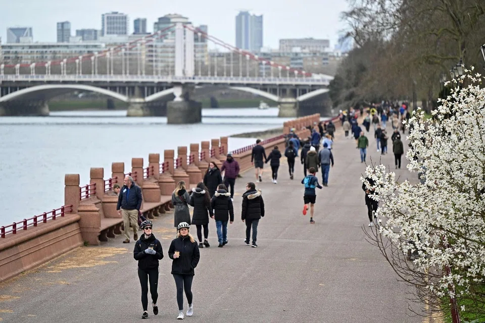 On Sunday, Britain passed the milestone of giving the first vaccine dose to more than 30 million adults, and the government plans to allow outdoor drinking in pub gardens and non-essential retail such as hairdressers in England from April 12.