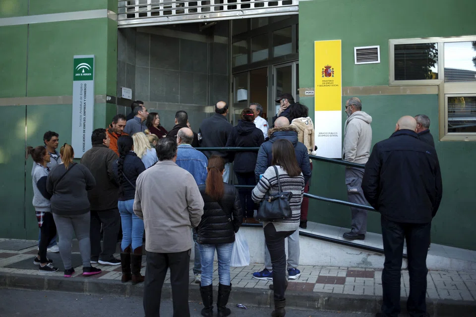 [BRUSSELS] Eurozone unemployment fell to 10.3 per cent in February, a four-and-a-half year low, from a revised 10.4 per cent in January, official statistics showed Monday.