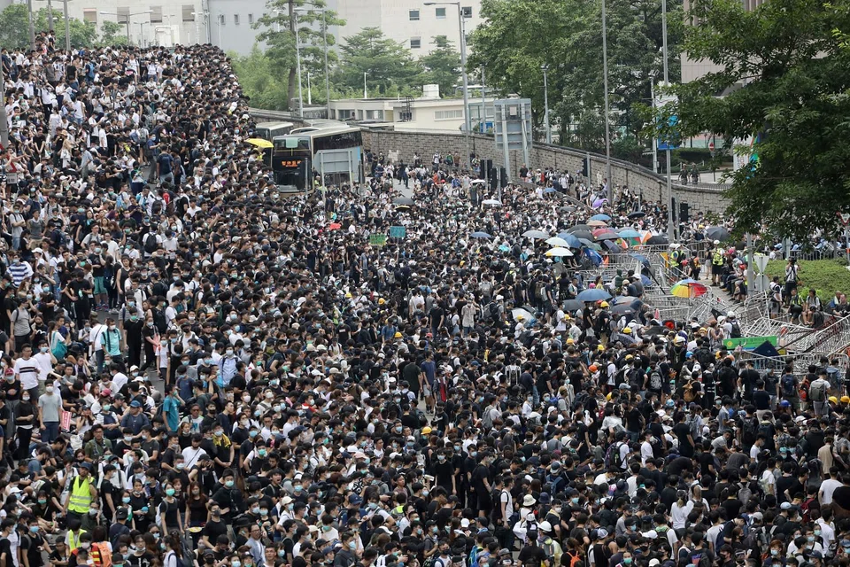 [HONG KONG] Tens of thousands of demonstrators in Hong Kong surrounded the city's legislature on Wednesday, forcing it to postpone a second round of debate on an extradition bill that would allow people to be sent to mainland China for trial.