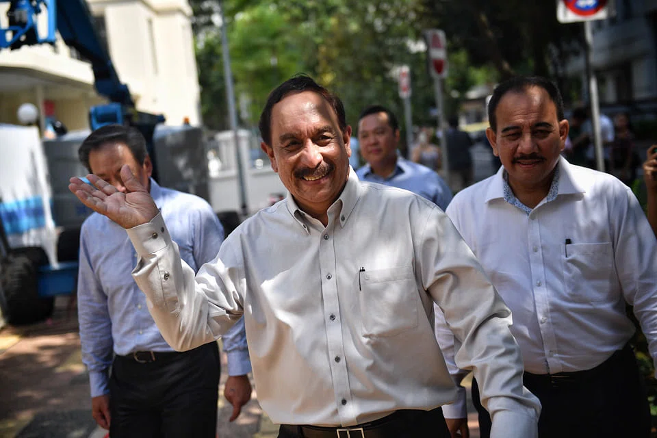 Farid Khan Kaim Khan, the chairman of marine-services provider Bourbon Offshore Asia Pacific, was at the Elections Department (ELD) on Prinsep Street on Thursday to hand in his application forms for the Certificate of Eligibility and the Community Certificate.