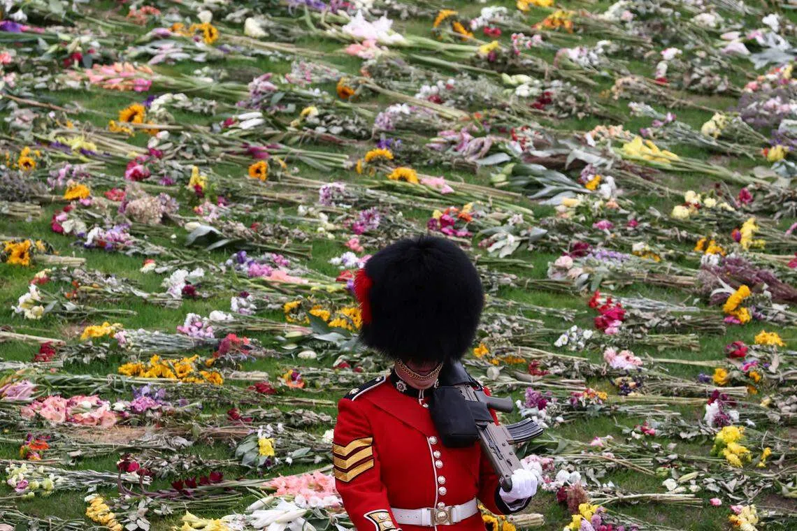 TENS of thousands of people lined the route taking the late Queen Elizabeth to her final resting place at Windsor Castle on Monday (Sep 19), throwing flowers towards the hearse and cheering as it departed the British capital following her state funeral.