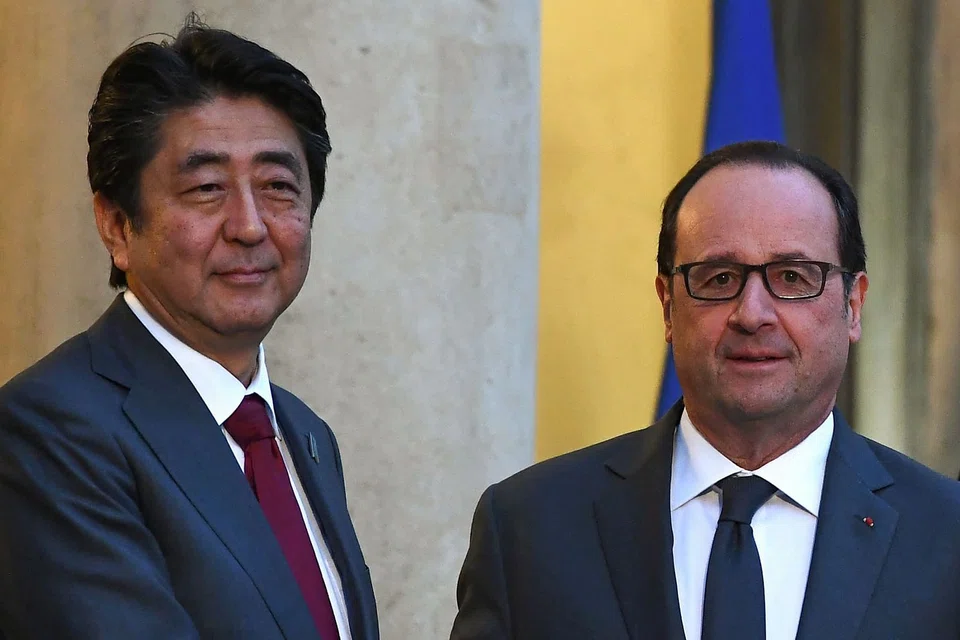 "Francois and I agreed on the importance of ensuring a free and open maritime order in the Indo-Pacific region (and) of continuing to support the stability and prosperity of this region," Mr Abe told reporters after the talks.