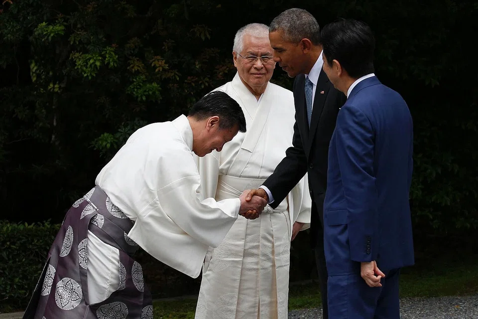 Japanese Prime Minister Shinzo Abe, who is hosting the G7 summit in Ise-Shima, about 300 kilometres (200 miles) southwest of Tokyo had greeted the leaders of France, Germany, Britain, Italy, Canada and the United States at the shrine's entrance as they arrived one by one.