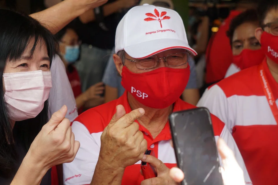 Dr Tan and PSP's Nee Soon candidates - Brad Bowyer, Kala Manickam, S Nalla, Damien Tay and Taufik Supan - covered various coffeeshops around Khatib and Nee Soon South on Sunday, and was accompanied by Lee Hsien Yang, the estranged younger brother of Prime Minister Lee Hsien Loong.