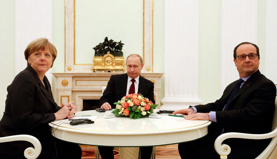 Chancellor Angela Merkel and President Francois Hollande met Putin on Friday evening, a day after holding five hours of late-night talks with Ukrainian President Petro Poroshenko in an effort to negotiate a peace deal for eastern Ukraine, where pro-Russian rebels have seized large swathes of territory.