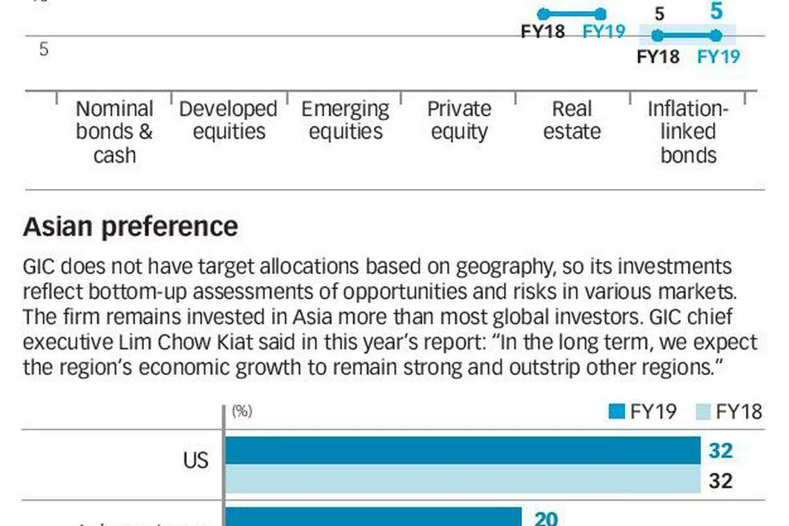 Its asset allocation as at end-March this year further showed that its cash and bonds allocation of 39 per cent was its highest since it adopted its latest investment framework in 2013. From a year ago, this allocation to cash and bonds was up from 37 per cent.