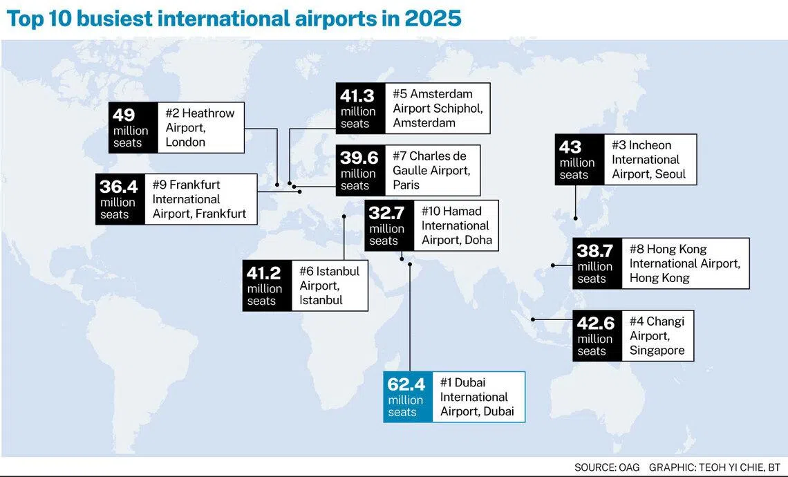 The airport recorded a seat volume of 42.6 million for 2025, 3 per cent higher than in the previous year, the World’s Busiest Airports of 2025 report said.