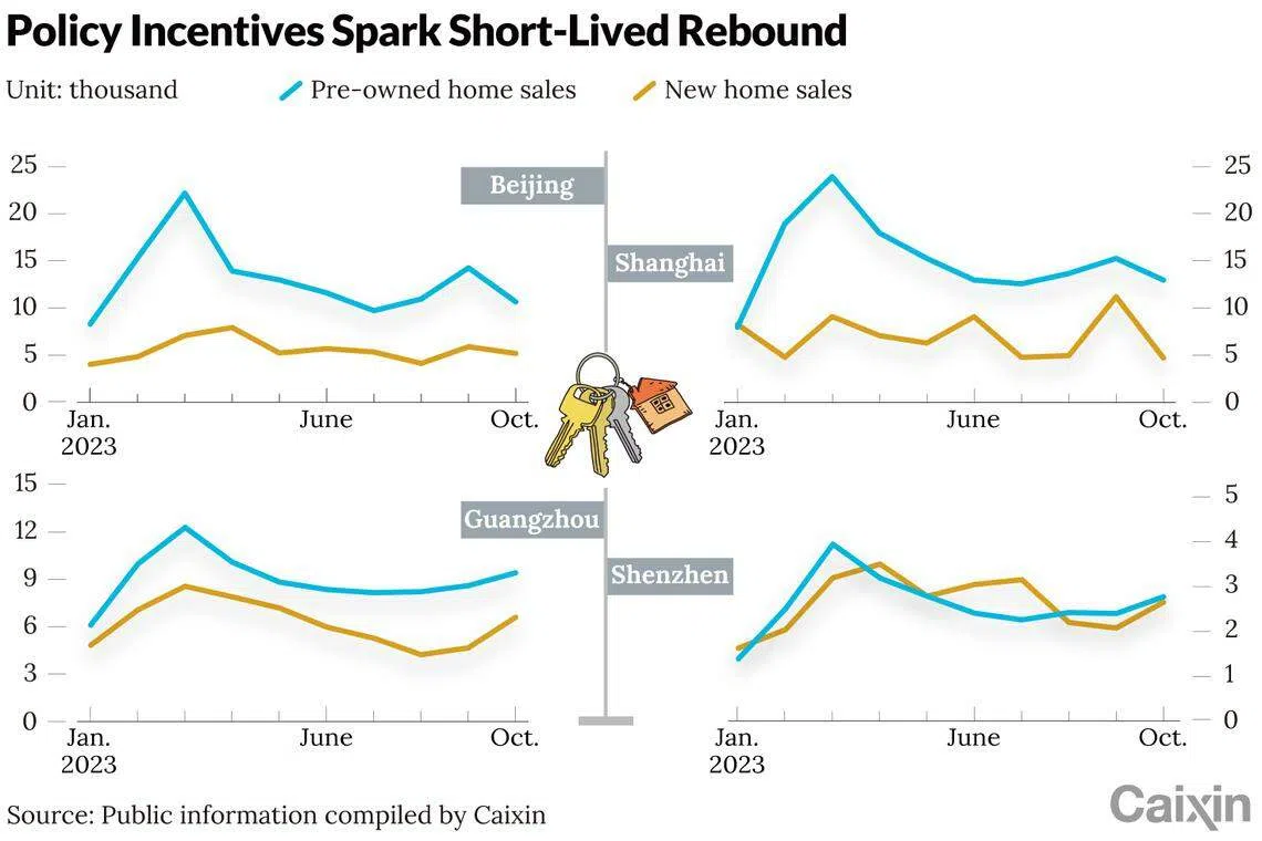 Since August, authorities at central and local levels have issued various rules to prop up sales, including easing mortgage requirements and lower down payments. The measures led to a sales rebound in many cities, but were short-lived.