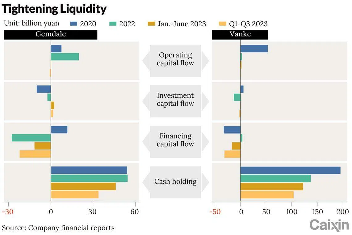 “I didn’t expect Vanke to reach this point,” an executive at a mid-sized developer said, pointing to the shrinking financing inflows and cash holdings, which are very small for a company like Vanke.