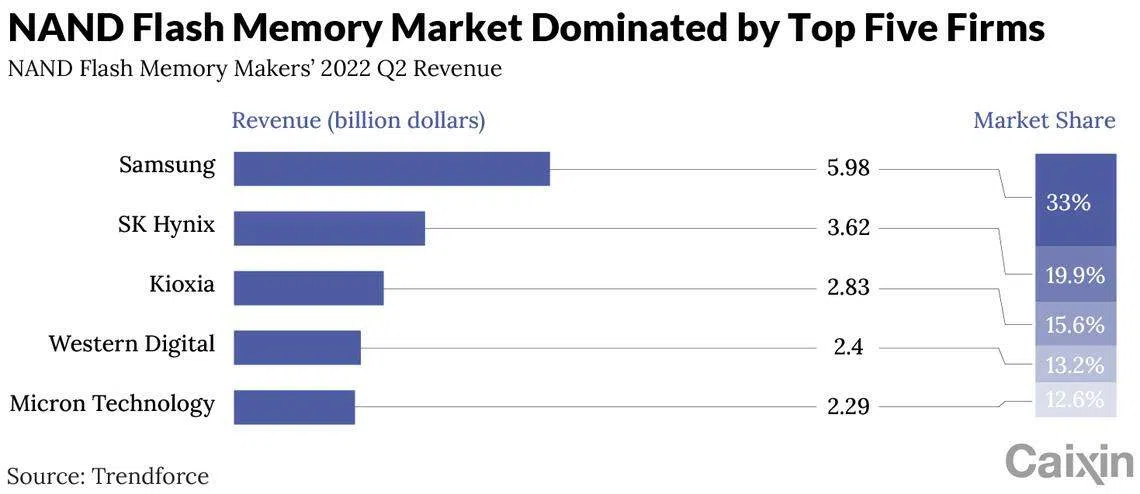 ChangXin’s 12-inch wafer production line in Hefei began production in September 2019 with a design capacity of 120,000 wafers a month. According to an original plan, ChangXin was to build two more 12-inch wafer production lines. The phase 2 project is still under construction. Yangtze Memory planned to massively expand its 128-layer NAND production line and start trial production of a 232-layer product. Now that plan will be difficult to carry out, several industry participants told Caixin.