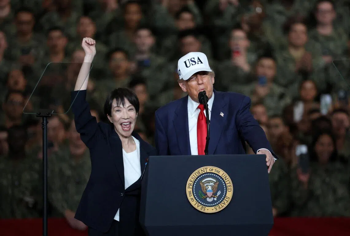 [TOKYO] US President Donald Trump lavished praise on Japan’s first female leader Sanae Takaichi in Tokyo on Tuesday (Oct 28), welcoming her pledge to accelerate a military build-up and signing deals on trade and rare earths.