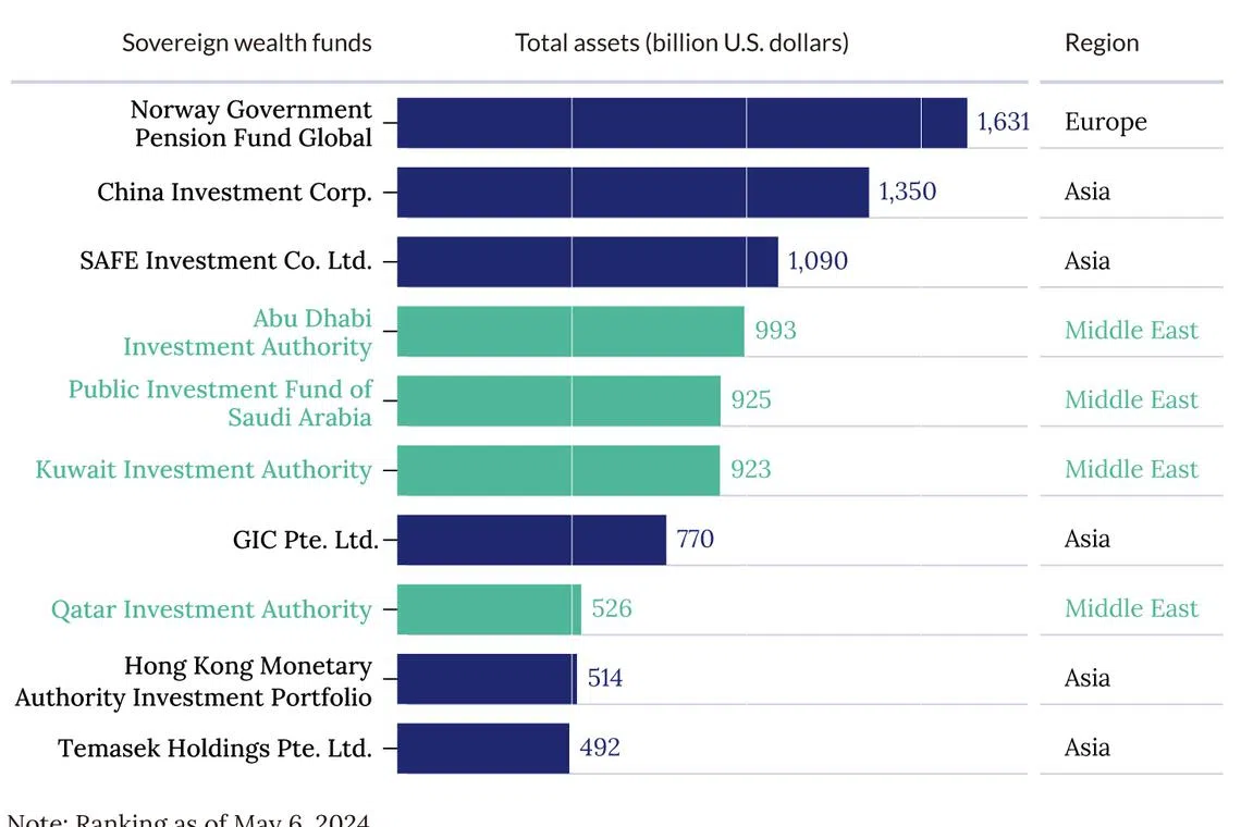 They are the Abu Dhabi Investment Authority, the Public Investment Fund of Saudi Arabia, the Kuwait Investment Authority, and the Qatar Investment Authority.