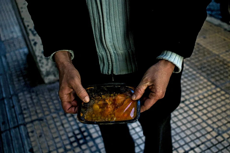 BEHIND the lace curtains of a soup kitchen run by a parish in the humble Athens neighbourhood of Kerameikos, the needy and hungry sit down to a plate of sliced cucumbers, three hunks of bread, a shallow china bowl of chickpea soup and often a piece of meat. Sometimes there is even ice cream, a special treat.