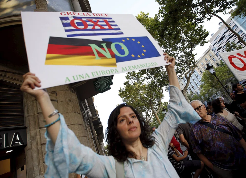 One poster plastered in central Greece shows a picture of German Finance Minister Wolfgang Schaeuble with the slogan: "For five years he's been sucking your blood. Tell him NO now." But fuelling fears of worse to come, the Financial Times reported that Greek banks were making contingency plans to possibly "bail in" depositors, a prospect Greek leaders have repeatedly denied.