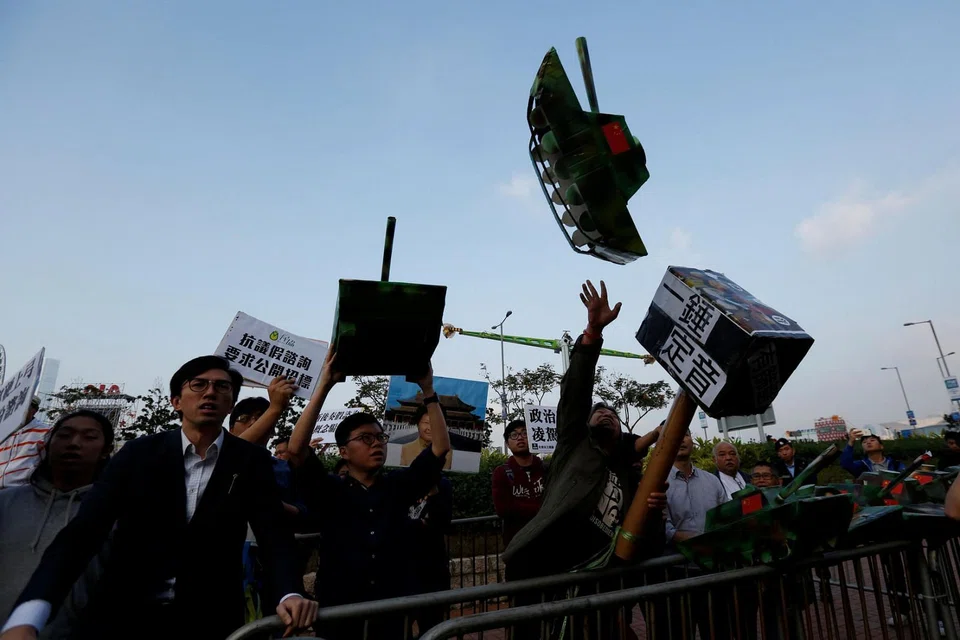 Recent demonstrations against the plans have included protesters throwing paper tanks at officials, in a reference to China's Tiananmen Square crackdown.
