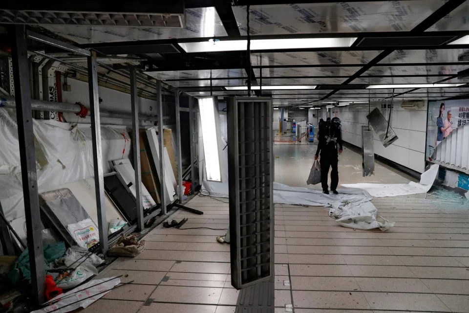 Morning commuters were faced with closed metro stations, a suspended rail line and dozens of cancelled bus services a day after police warned that the rule of law in the territory was on "the brink of total collapse".