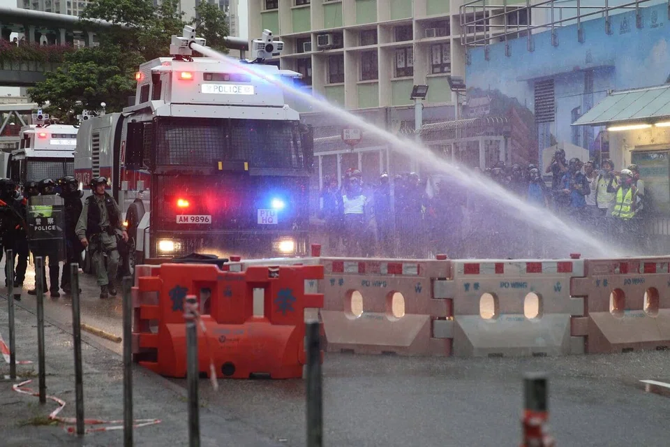 Hong Kong officer fires shot; police use water cannons at protest