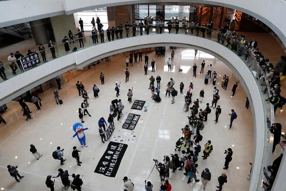 [HONG KONG] Hong Kong's pro-democracy protesters staged a small demonstration at a luxury downtown mall, challenging rules that ban gatherings of more than four people, in a glimpse of what could be another summer of discontent as local coronavirus cases ease.