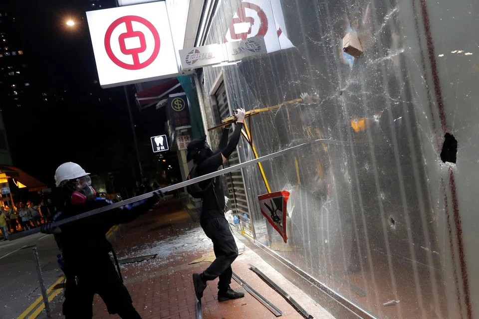 [HONG KONG] The black-clad protesters pushing back against China's influence in Hong Kong aren't just focusing on Carrie Lam and the police. They're also targeting mainland-based brands such as Bank of China Ltd, China Mobile Ltd and Huawei Technologies Co. with fire bombs, metal bars and spray paint.