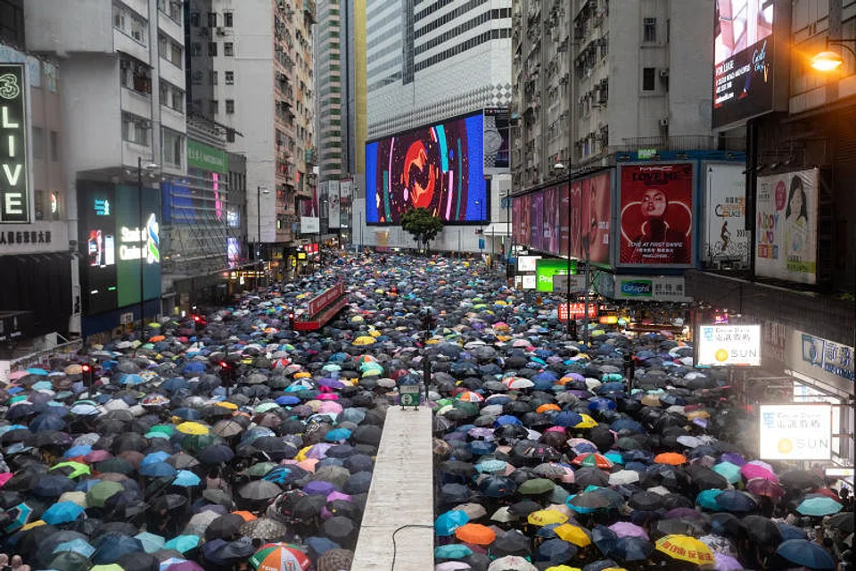 On Sunday, protesters spilling out from Victoria Park, the designated rally area on Hong Kong island, streamed onto major thoroughfares towards the city's financial centre, chanting for Beijing-backed leader Carrie Lam to step down.