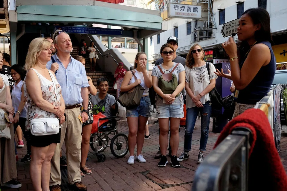 "I don't want them to just see that Hong Kong is wealthy," said Ms Lau, 26, after leading nearly a dozen tourists on a free walking tour of Hong Kong.