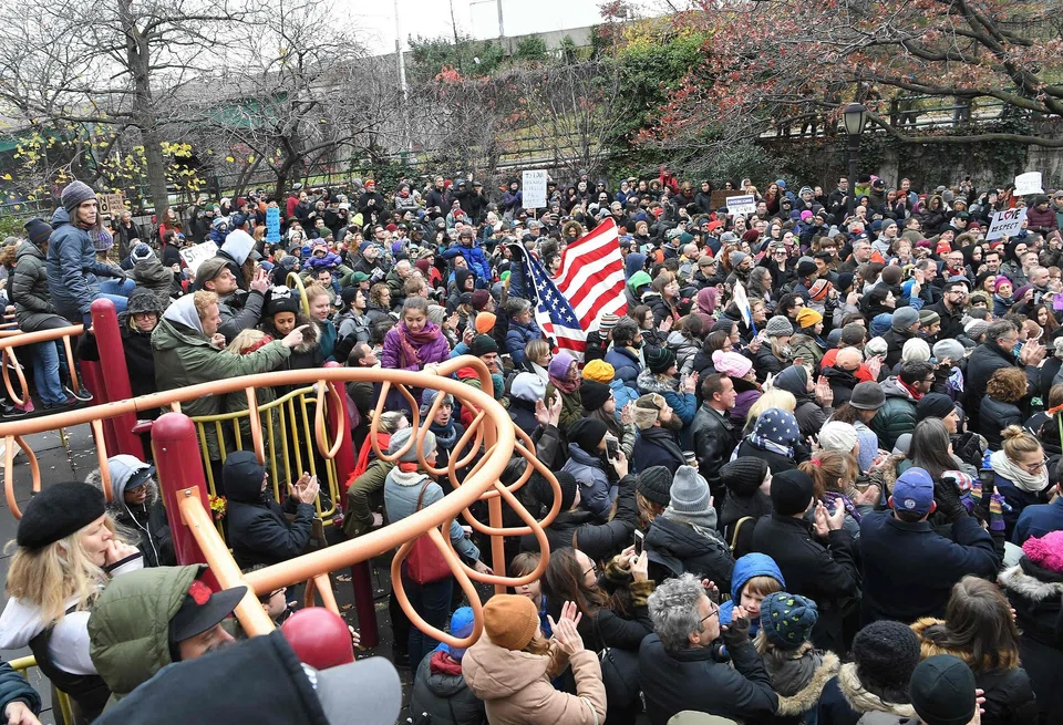 Hundreds protest as swastikas and 'Go Trump' appear in New York park
