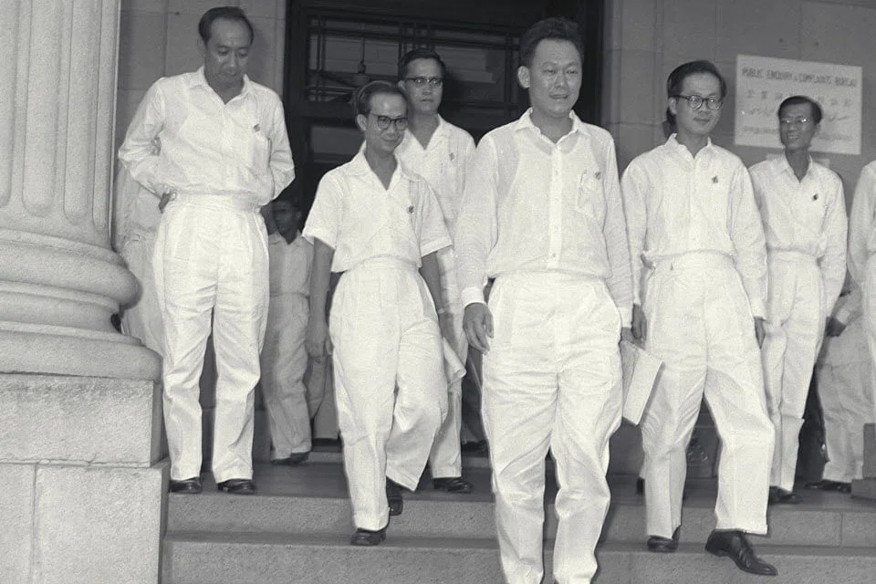 Back home, Mr Lee soon made a name for himself representing striking workers in industrial actions, and found in the trade unions the mass support base he and his political comrades needed. And when their People's Action Party (PAP) - launched in November 1954 - won 43 out of 51 seats in the 1959 general election, he became, at 35, prime minister of a self-governing state.
