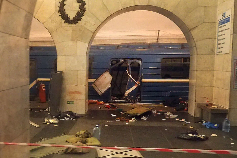 AT LEAST 10 people were killed and 50 injured when an explosion tore through a train carriage in the St Petersburg metro system on Monday, Russian authorities said.