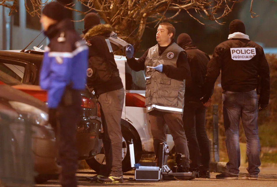 The frantic manhunt stretched into the night with search-and-seizure operations in Strasbourg and towns near Paris, while in northeastern Reims, police commandos raided a building later scoured by white-clad forensic police.