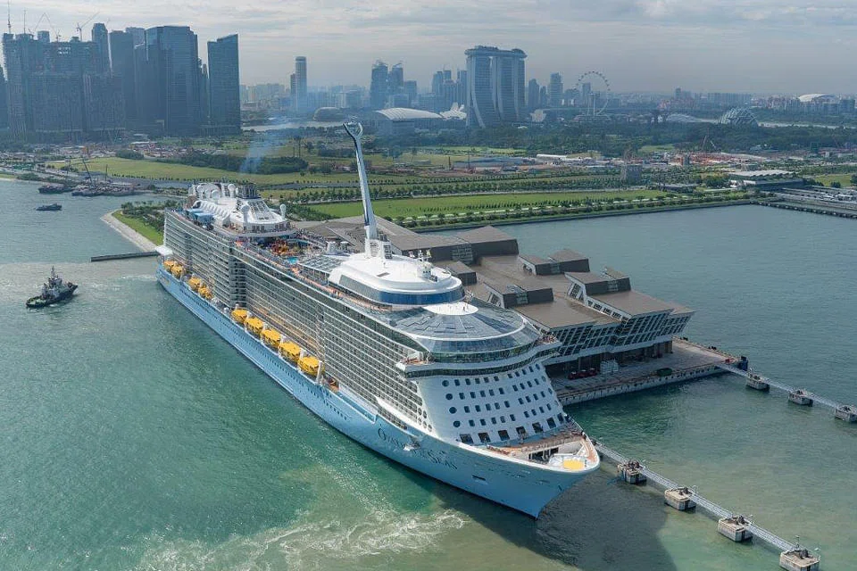 Ovation of the Seas docked in Singapore on Monday for its inaugural season here, with 10 sailings slated for the season. Over half of the ship's bookings have stemmed from overseas, Royal Caribbean said. At 347 metres long, Ovation of the Seas is the biggest cruise ship to come to Singapore with a capacity of more than 4,900 guests.