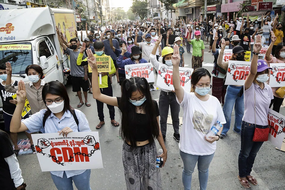A civil-disobedience movement has crippled government business, unleashing strikes at banks, factories and shops since the army ousted Aung San Suu Kyi's elected government in a coup on Feb. 1.