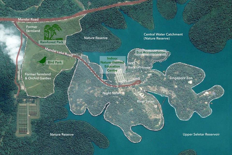 Complementing existing attractions such as the Singapore Zoo and River Safari, the new Bird Park and Rainforest Park as well as public spaces will be developed at a 35-hectare site outside the Central Catchment Nature Reserve. The new parks will be developed on previously occupied land and strict measures will be implemented to protect the animals and plants in the area.