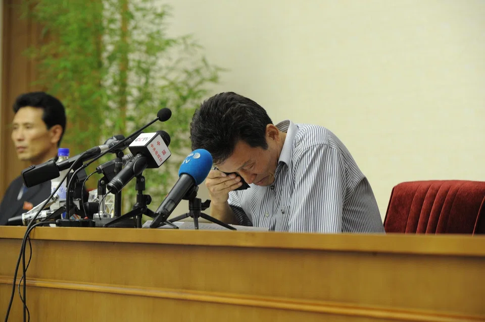 Such choreographed and apparently scripted public confessions are standard practice for foreign or North Korean nationals arrested for subversive activity.