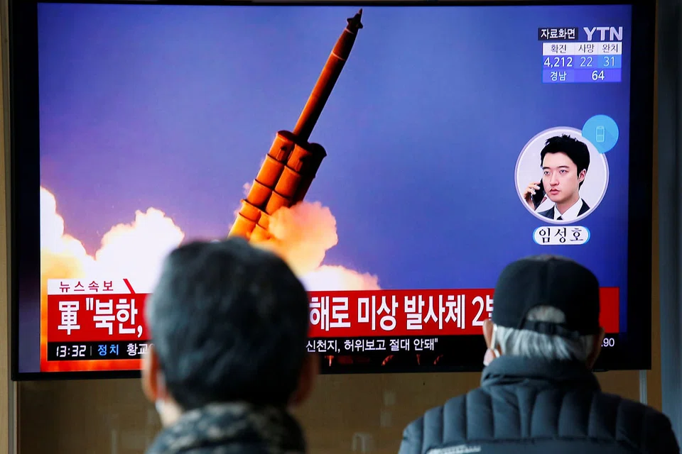 [SEOUL] North Korea launched two short-range projectiles off its east coast Monday in the country's first weapons test in three months, returning to its provocative behaviour a year after Kim Jong Un's failed summit with President Donald Trump.