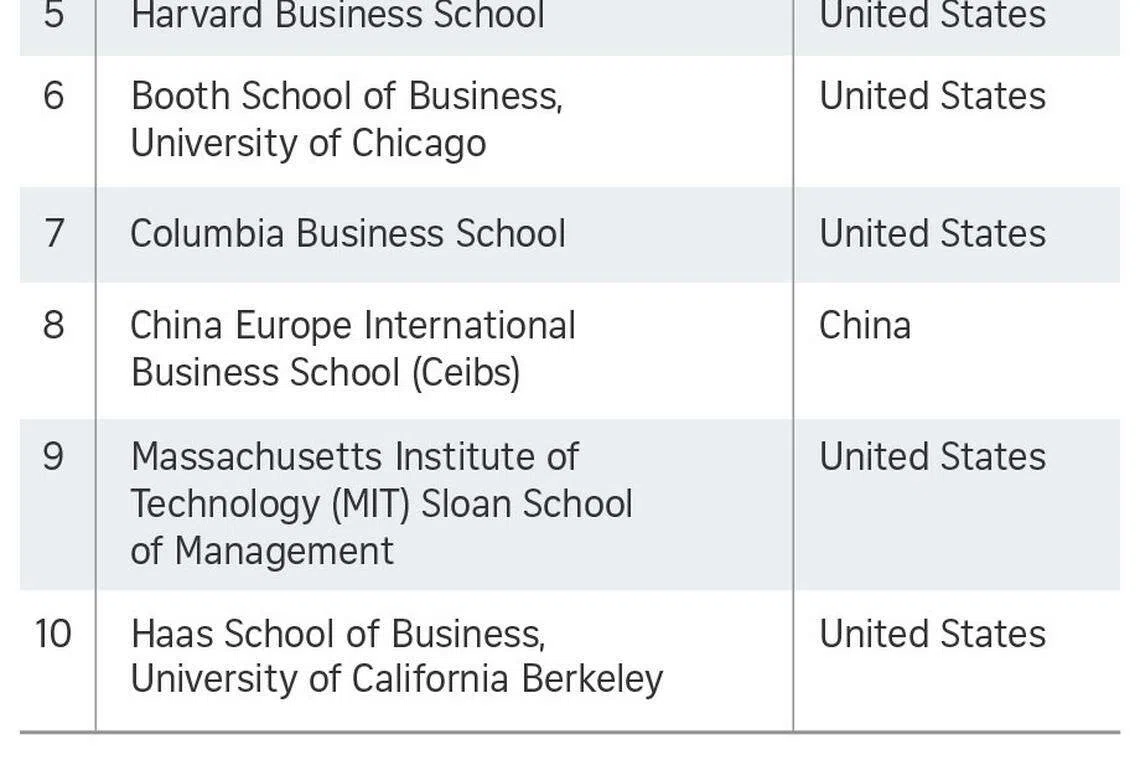 Meanwhile, the Singapore Management University (SMU) Lee Kong Chian School of Business (LKCSB) which participated in the ranking for the first time this year, is placed 49th - the highest of four newly ranked MBAs. The other new entrants are all from Europe.