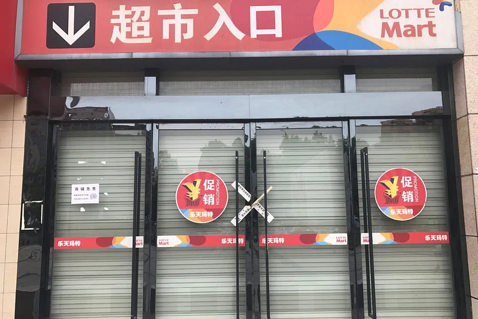 ON A faded notice pasted to the padlocked doors of the Lotte Mart superstore in China's Jiaxing, a date can still be read: March 6, 2017 - when the store was ordered to "temporarily" close over alleged fire safety issues.