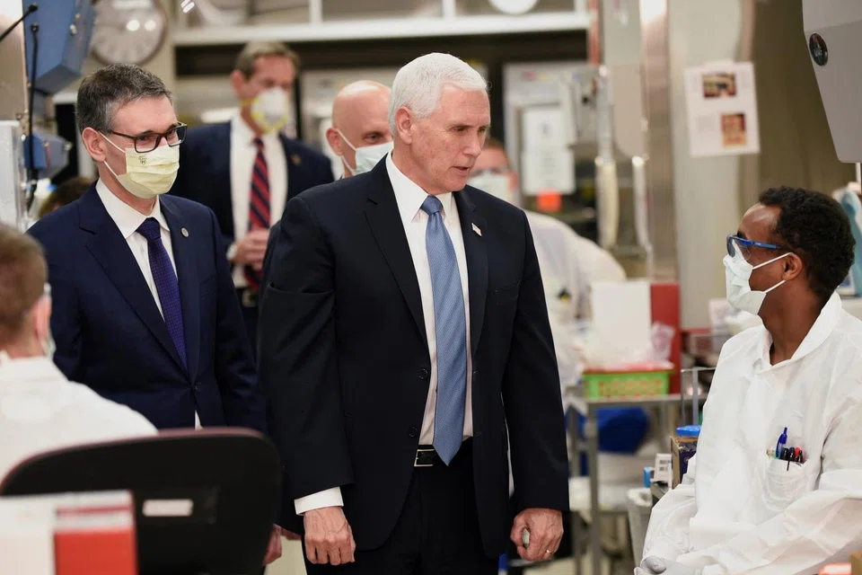 Mr Pence was photographed during the April visit as the lone person not wearing a face mask alongside patients and healthcare professionals. He previously defended the decision, citing US Centers for Disease Control and Prevention guidelines that say a mask primarily serves to prevent wearers from spreading the infection, not from guarding against it.