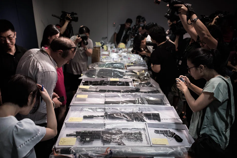 They would not name the group or specify motives but said that maps of central districts of Hong Kong had been found and warned anyone taking part in public gatherings to stay away from "violent protesters".
