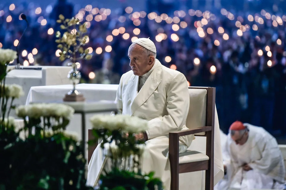 As night fell, the esplanade and neighbouring streets lit up with candles held by the faithful as the pope blessed the crowd.