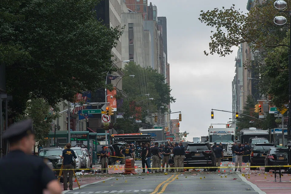 A POWERFUL explosion caused by what authorities believe was a homemade bomb injured at least 29 people on a crowded sidewalk in the bustling Chelsea neighbourhood of Manhattan on Saturday night, according to police.
