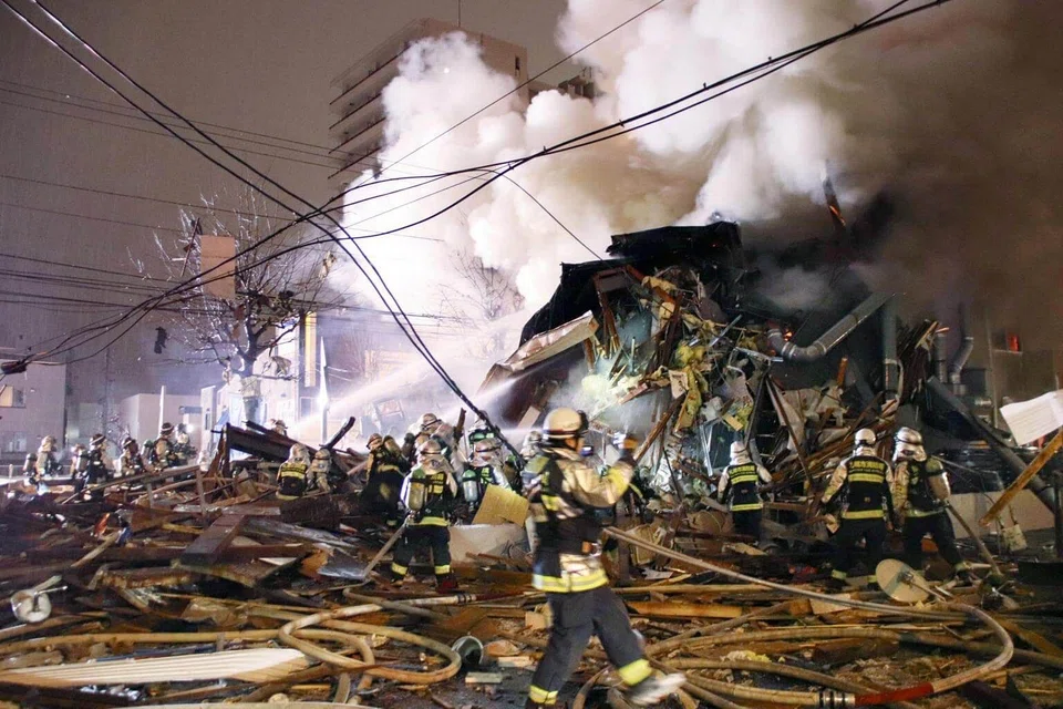 Images from the scene showed large flames and plumes of smoke rising in the night air after the blast in the northern city of Sapporo.