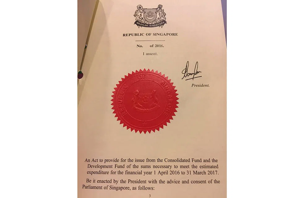 President Tony Tan gives his assent to Supply Bill