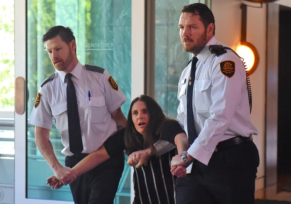 The protesters, who reached the parliamentary public gallery above sitting politicians, forced Prime Minister Malcolm Turnbull to leave the chamber and the suspension of parliament.