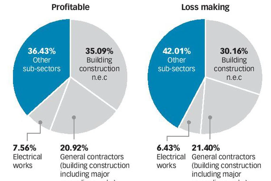 The average revenue increase from FY2018 to FY2019 was 89.4 per cent - the largest among sub-sectors with at least 10 filings. Companies in glass and glazing works reported the sharpest decrease in revenue - falling 28.2 per cent on average.