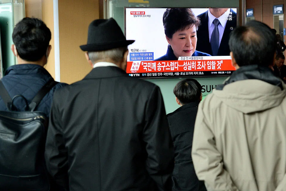 SOUTH Korea's ousted president Park Geun-hye was questioned by prosecutors on Tuesday about the corruption and abuse of power scandal that brought her down, after using executive privilege to avoid them for months while in office.
