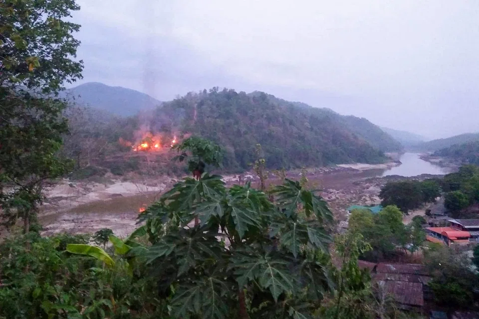 In Tuesday's fighting, villagers on the Thai side of the river said heavy gunfire started before sunrise. Video posted on social media showed flames and smoke on the forested hillside.
