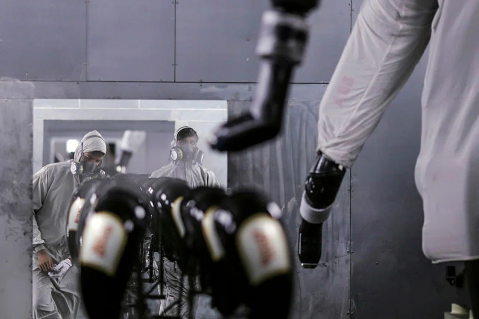 Only a few workers are still needed on the paint line at Royal Enfield Motors Ltd's plant in Oragadam, doing touch-ups on the iconic two-wheelers coveted for their classic design. Four robots can do the work of 15 human painters toiling across three shifts.