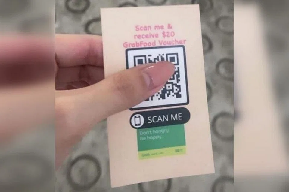 Sengkang Neighbourhood Police Centre on Wednesday (Feb 23) warned of a scam involving a printed flier of a Grab food voucher giveaway and a QR code. The QR code leads to a request for personal details.