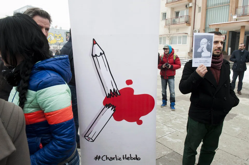 He showed his solidarity with Charlie Hebdo with a drawing of a hand with a raised middle-finger in the form of a pencil, alongside the #JeSuisCharlie slogan.