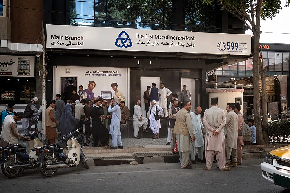Under the Taliban and its new central bank governor, the country's 12 state-owned and commercial banks were ordered to open their doors on Sunday. Since then, lines of people waiting to withdraw money snake around corners, interrupted only by side streets and driveways. Limits have been placed on how much each person is allowed to withdraw.